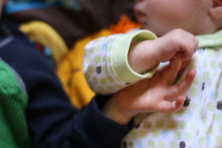 Nash is doing so great with Quinn...he is so proud of his little brother. Some of my favorite moments with Nash these days are immediately when he wakes up - the very first thing he has asked (for 2 weeks straight)..."my kiss dat baby tin" (i want to kiss baby quinn). Sometimes it is "my kiss dose baby teeks" (i want to kiss those baby cheeks). MELTS my heart everytime. For the most part Nash is very gentle with Quinn and any non-gentle incidents are purely because Nash is so excited to show Quinn how to use (insert large, hard, plastic toy here....golf clubs, hockey sticks, bull dozers, etc) whatever he happens to be playing with. Nash is also very into holding baby Quinn...for which he requests with a sweet "my hold dat baby tin". Usually lasts no more than 15 seconds, but good photo ops nonetheless. Nash has still been sleeping well, napping well, eating well....not much has changed for his routine. We're still sending him to school most days to keep that piece of his life consistent and give me some time to bond with Quinn and get his reflux issues under control (another post). Nash will also be moving to the 2 year old room sometime in the next few months and we don't want him to miss that transition (and we have to pay for the spot regardless of if he goes so we don't lose it when I go back to work!). All in all, we are so pleased with Nash's transition from our 3 person family to 4 - we love watching him learn to like and love baby Quinn and are hopefully they'll grow up and be best buddies! See the brotherly love below...enjoy!